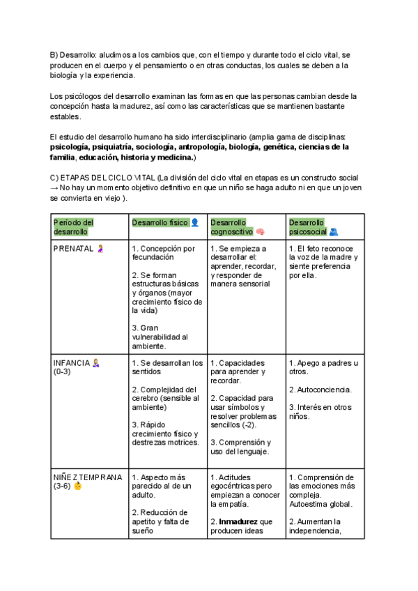 Apego, emoción, desarrollo cognitivo, desarrollo psicosocial, desarrollo prenatal