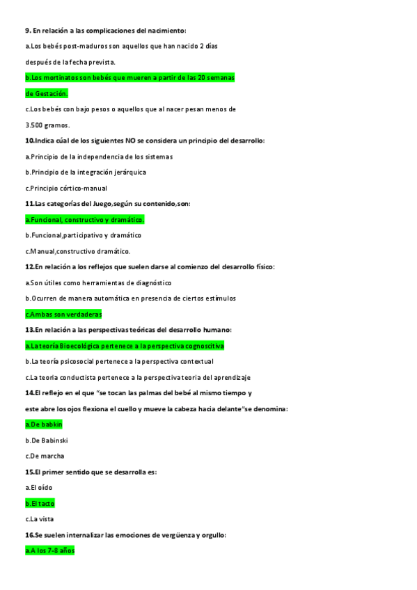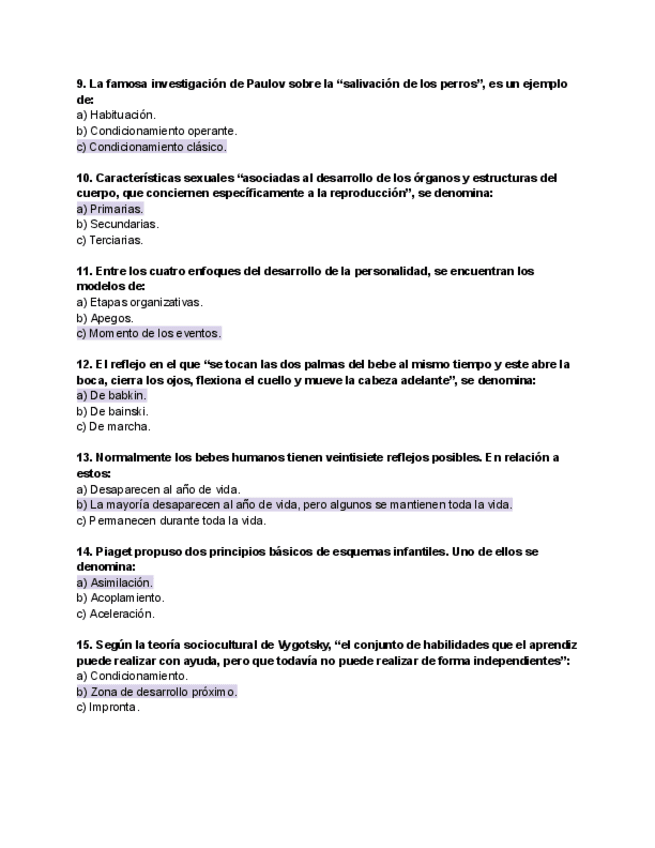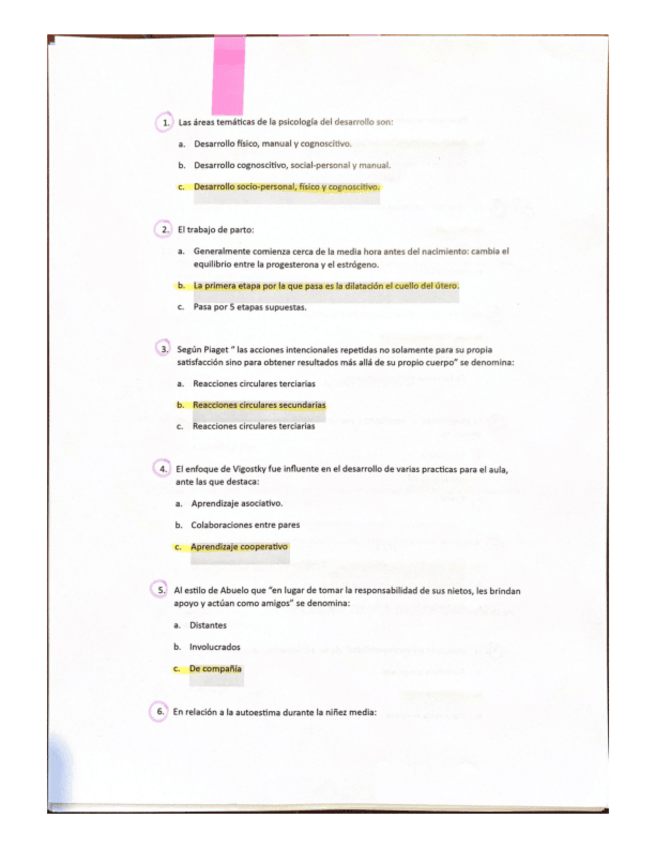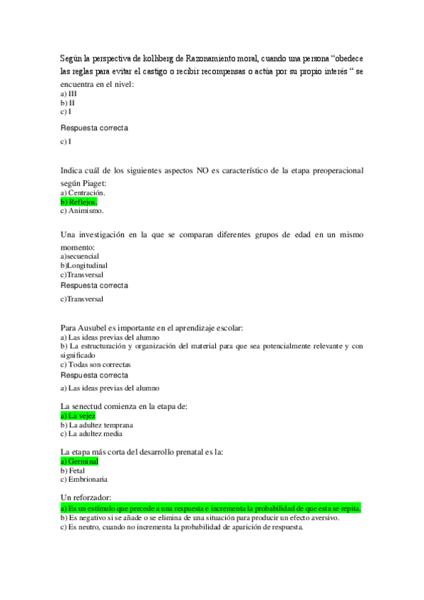 Examenes Pscología del desarrollo