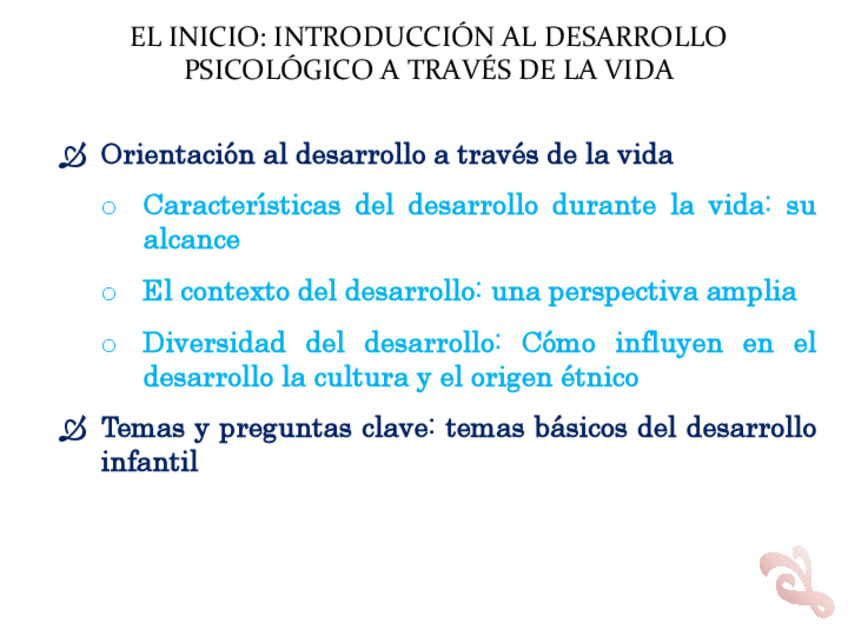 IDEAS IMPORTANTES DEL TEMA 1 DE PSICOLOGIA DEL DESARROLLO DE 1º DE PEDAGOGIA