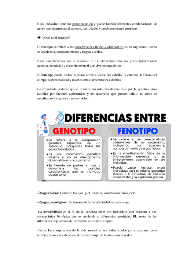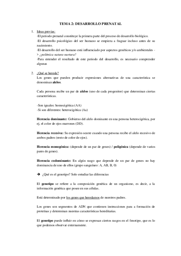 Psicología del desarrollo - 1º de Educación Primaria Apuntes tema herencia