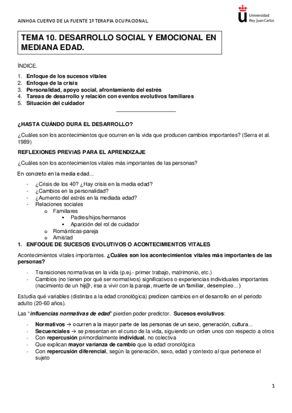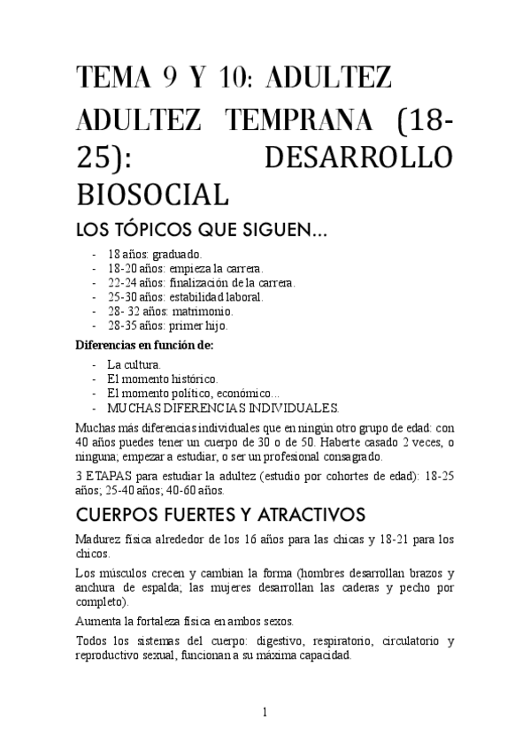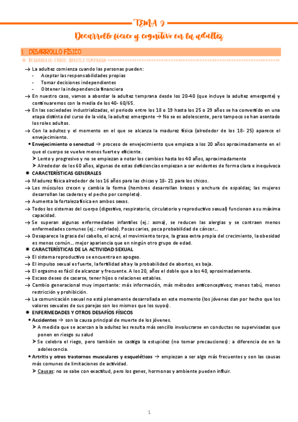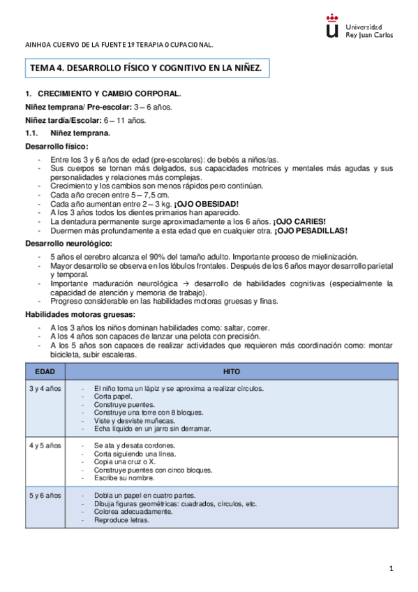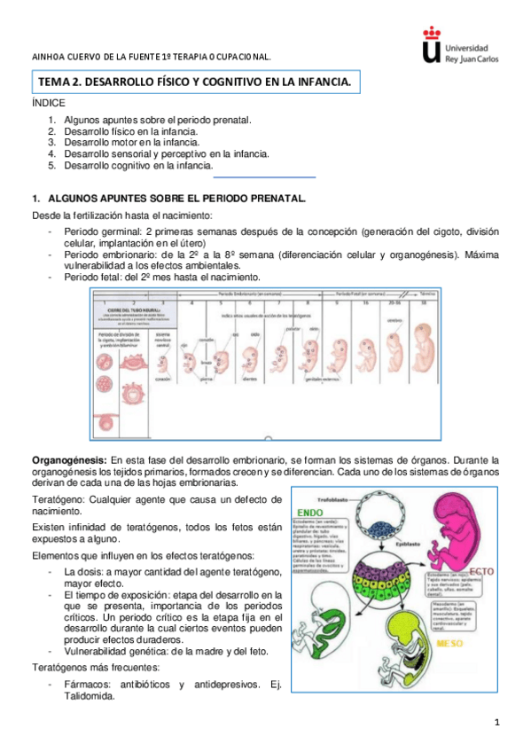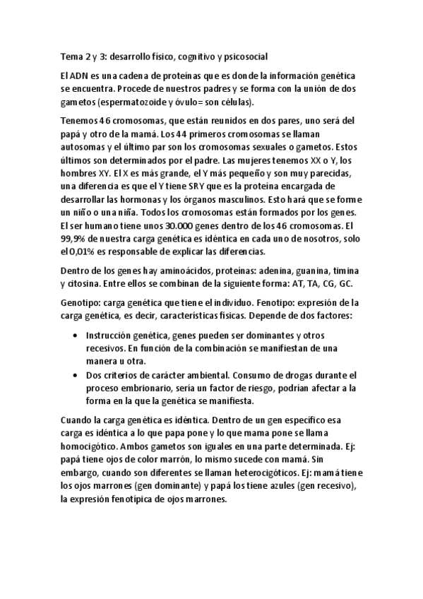 Tema 2 y 3 : desarrollo físico, cognitivo y psicosocial. Primer año de TO, segundo cuatrimestre