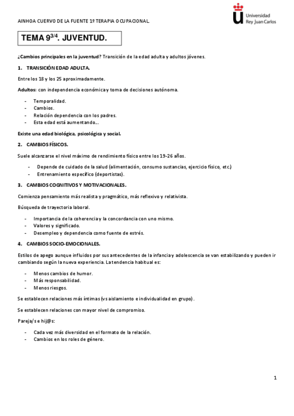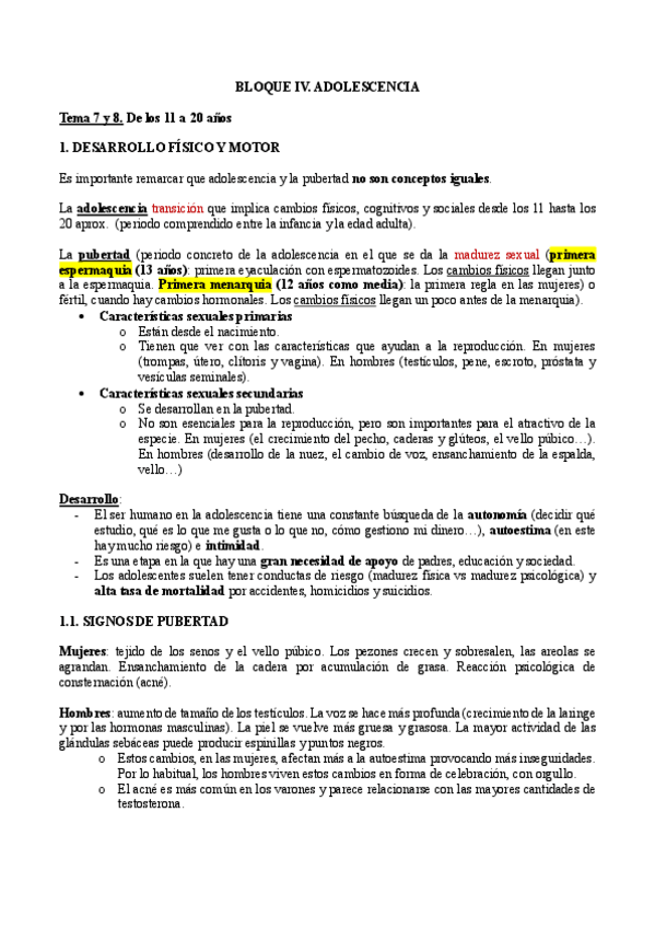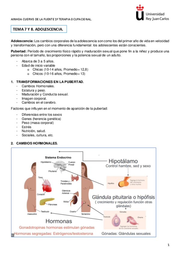 Tema 7 y 8: adolescencia. Primer año de TO, segundo cuatrimestre