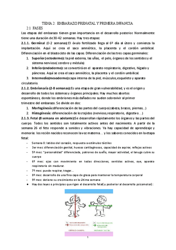 Apuntes de Psicología del desarrollo sobre la primera infancia con preguntas TEST