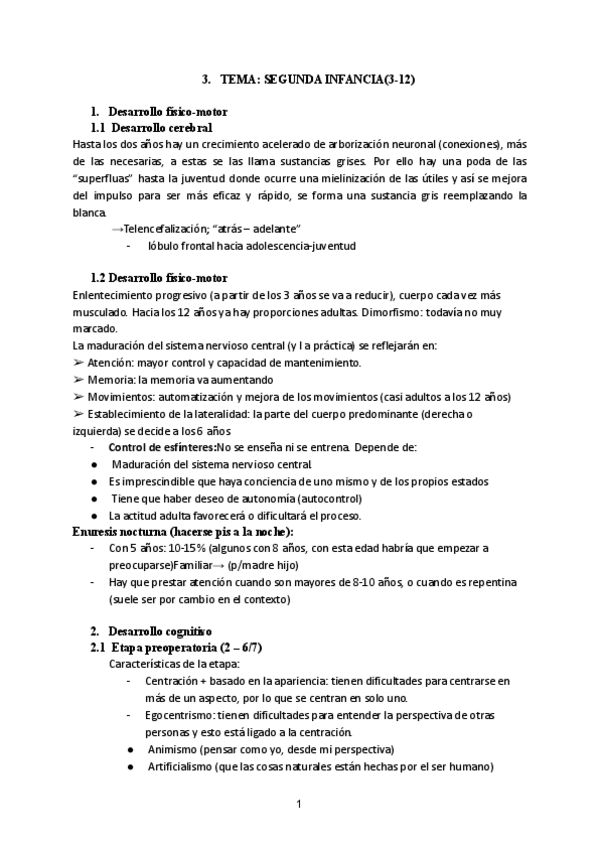 Apuntes de Psicología del desarrollo. Infancia de tres a doce años