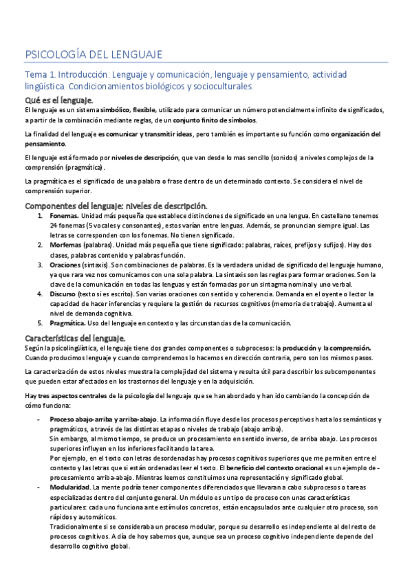 He publicado nuevos apuntes de 2º Psicologia del Lenguaje: Lenguaje