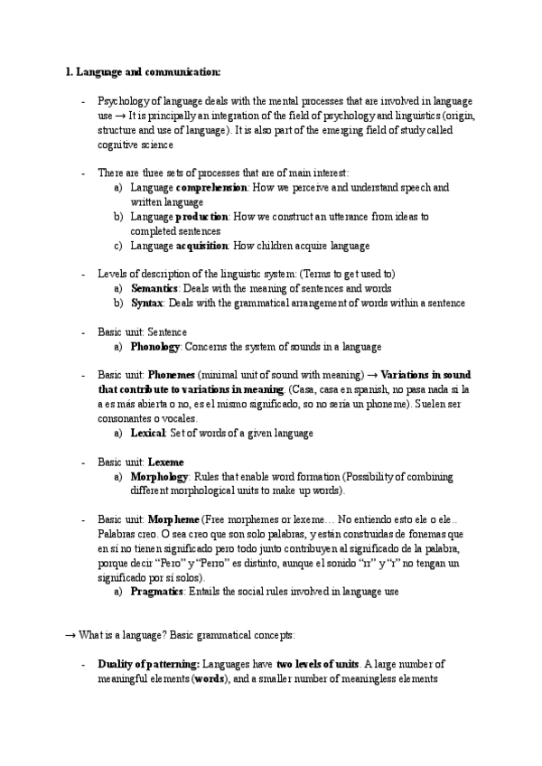 He publicado nuevos apuntes de 2º Psicologia del Lenguaje: BLOQUE 1 Lenguaje