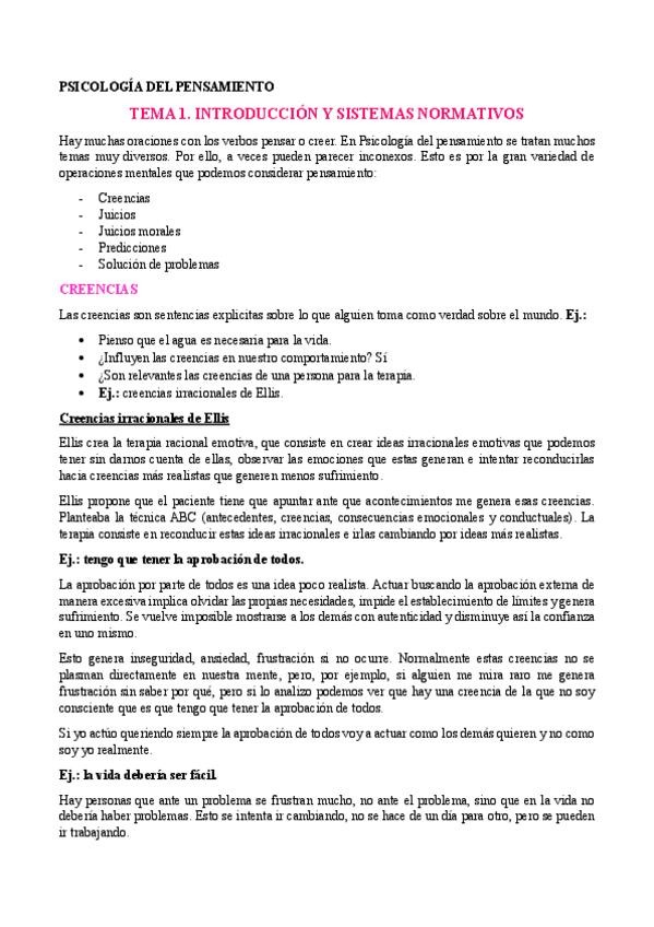 Apuntes de la asignatura de pensamiento con manual y notas de clase