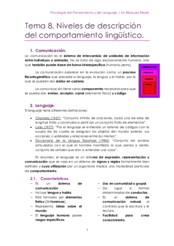 He publicado nuevos apuntes de 2º Psicología del Pensamiento y del Lenguaje: Tema 8. Niveles de descripción del comportamiento lingüístico.pdf