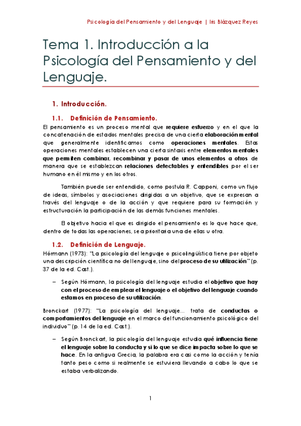 Psicología del Pensamiento y Lenguaje