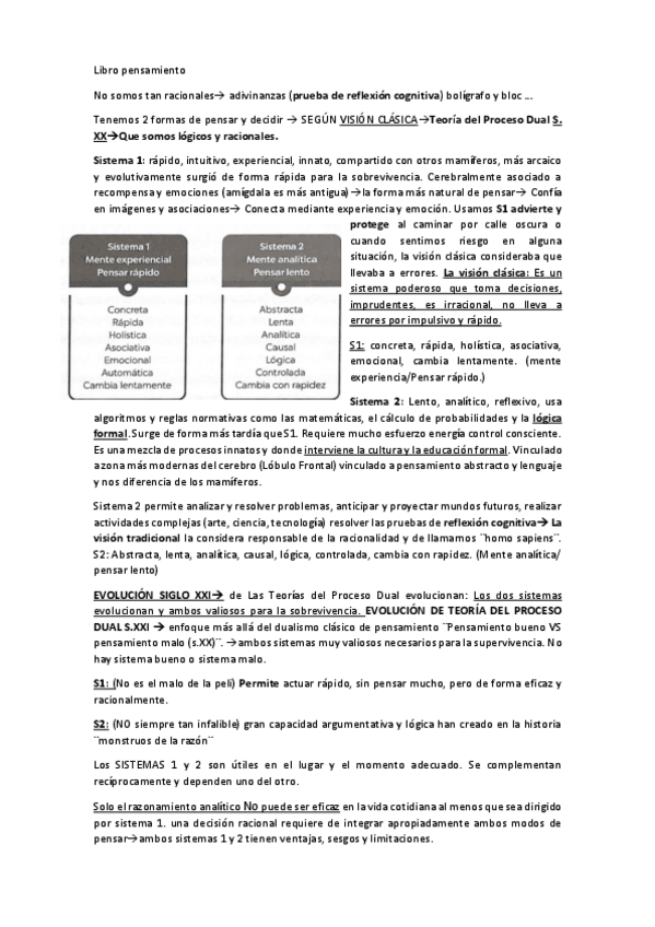 Apuntes de la asignatura de pensamiento con manual y notas de clase