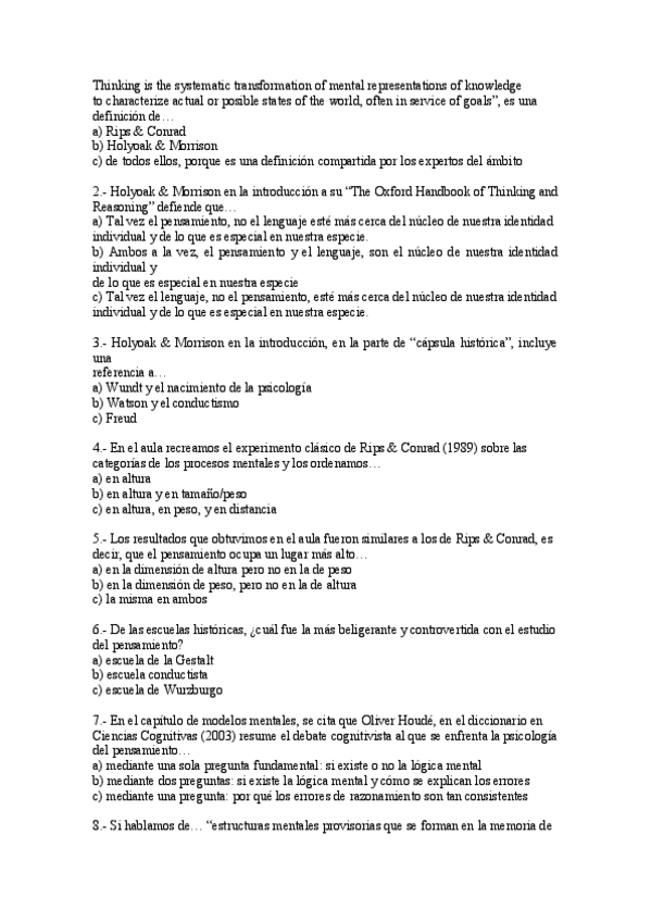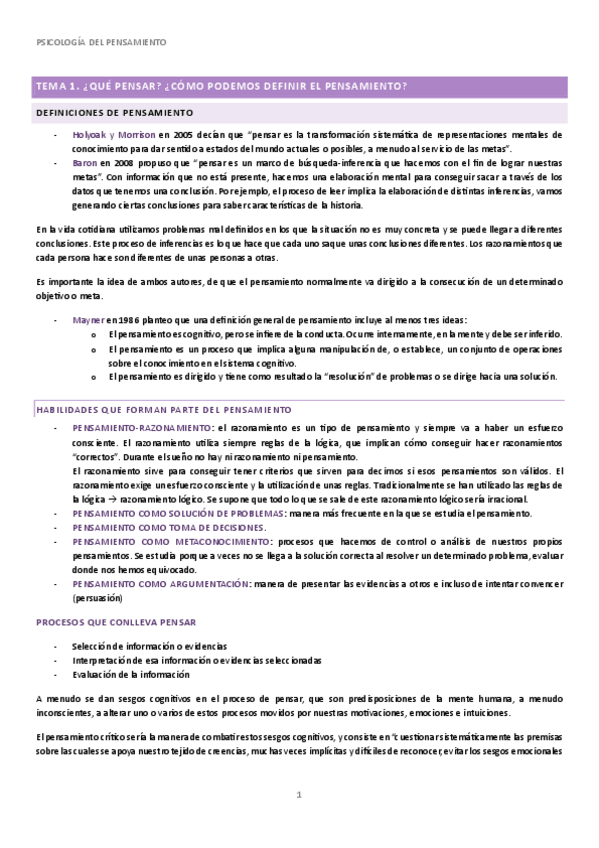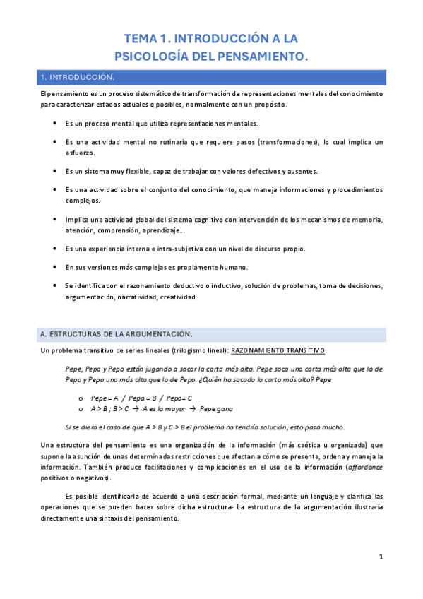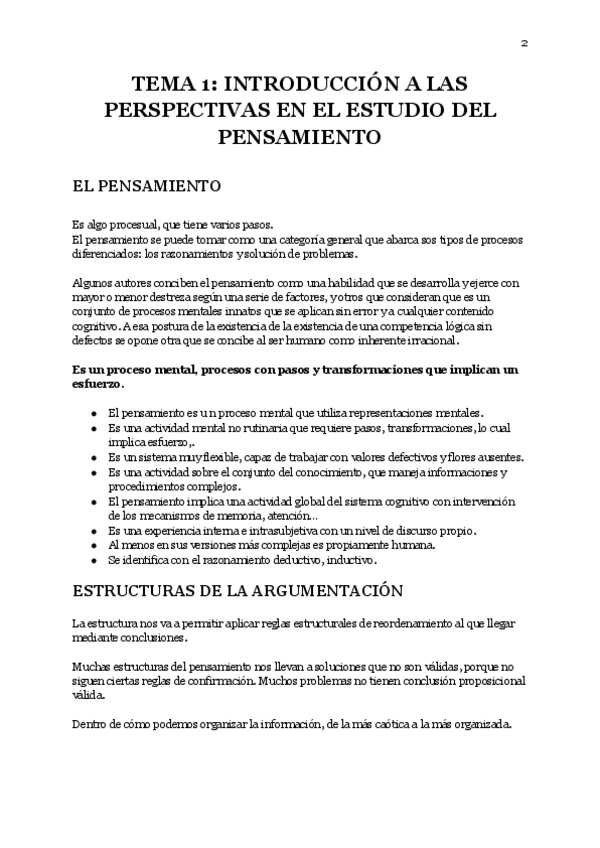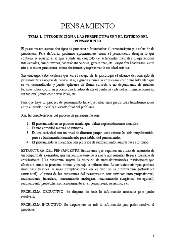 Temas 1-8 Psicología del Pensamiento