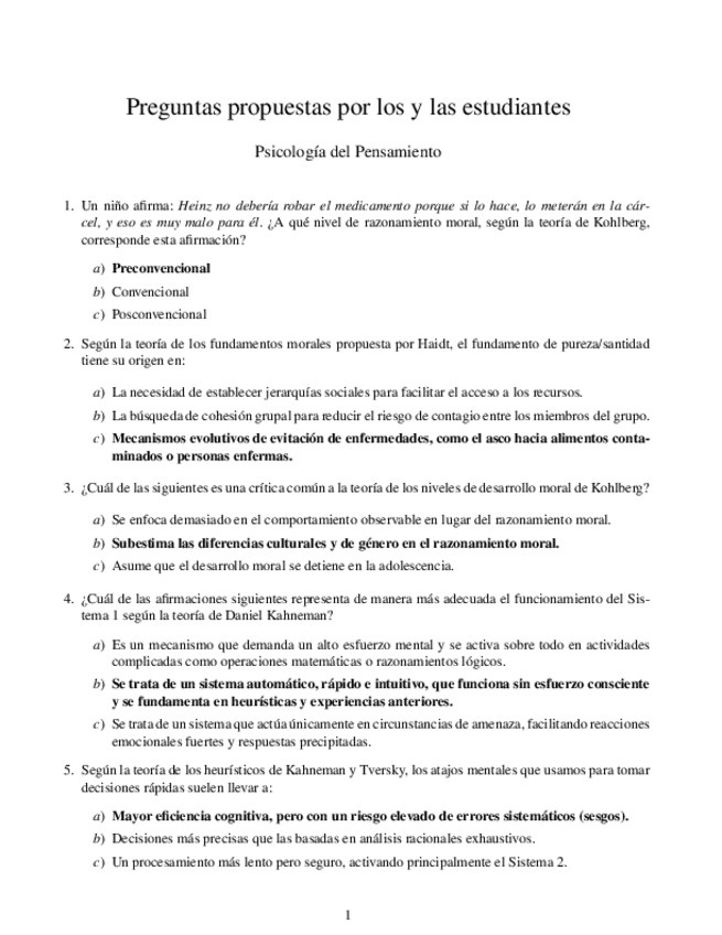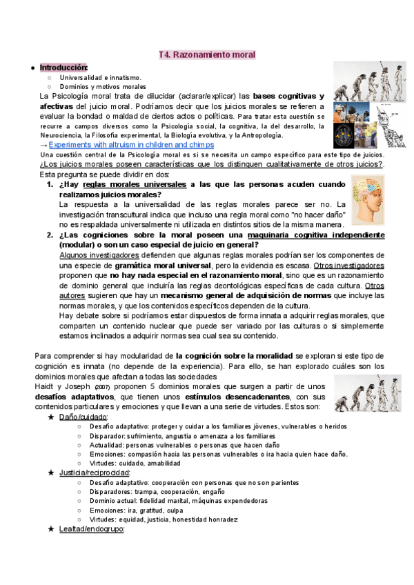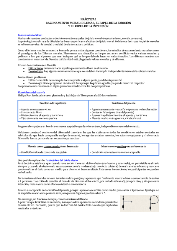 P1. Razonamiento moral: dilemas, el papel de la emoción y el papel de la intención + P2. Razonamiento, solución de problemas, heurísticos y sesgos.