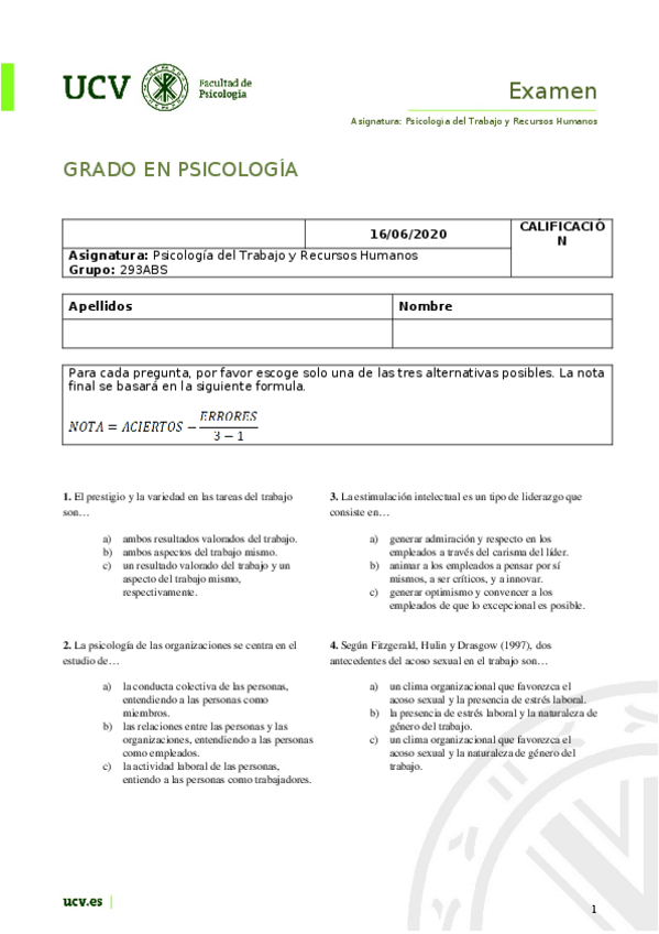He publicado nuevos examenes de 3º Psicología del Trabajo y Recursos Humanos: Examen-Completo.doc