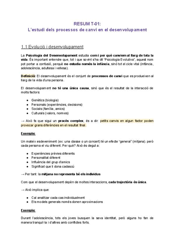 Resum de la teoria del tema 1: L’estudi dels processos de canvi en el desenvolupament.