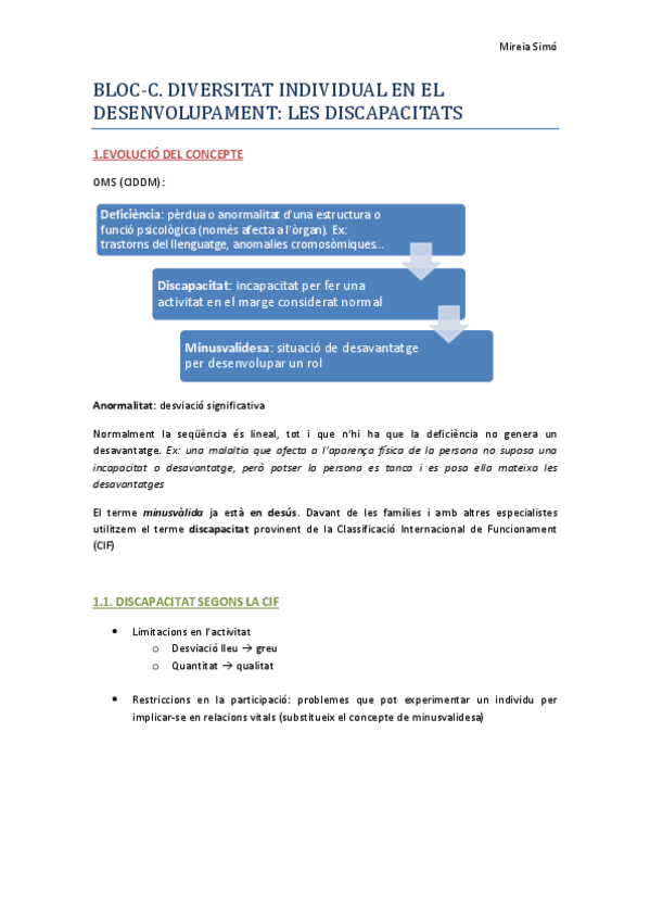 Apuntes - BLOC C - DIVERSITAT INDIVIDUAL EN EL DESENVOLUPAMENT (DISCAPACITATS).pdf