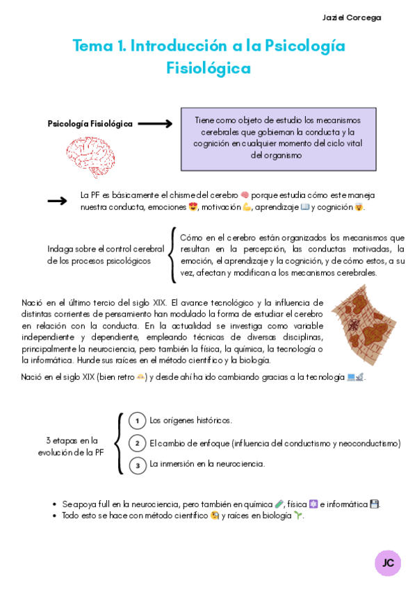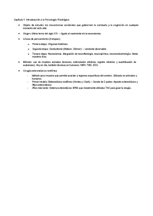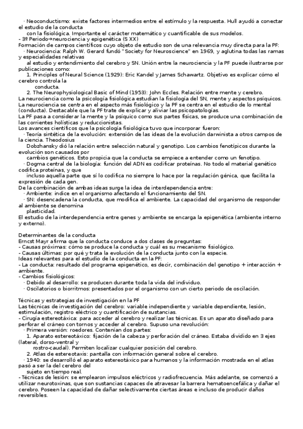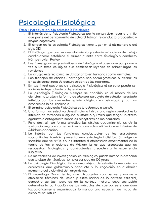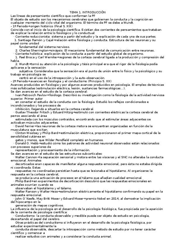 Apuntes del tema 1 de Psicologia Fisiologica. He añadido un punto que no había puesto antes ("Repensar la Psicologia Fisiologica") ¡Espero que os ayuden mis apuntes!