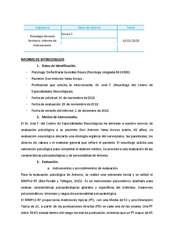 He publicado nuevos trabajos de 1º Psicología General Sanitaria. Fundamentos Científicos y Profesionales: Informe-interconsulta.pdf