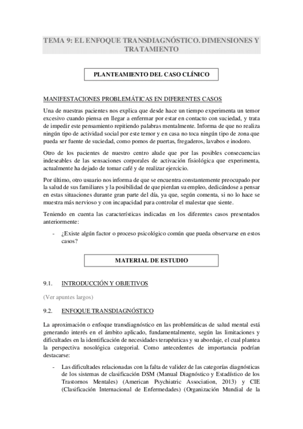 He publicado nuevos apuntes de 1º Psicología General Sanitaria. Fundamentos Científicos y Profesionales: Tema-9-El-enfoque-transdiagnostico.-Dimensiones-y-tratamiento.pdf