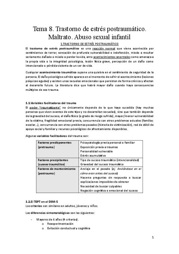 He publicado nuevos apuntes de 1º Psicología General Sanitaria Infanto-Juvenil: T6-TEPT-maltrato-y-ASI.pdf