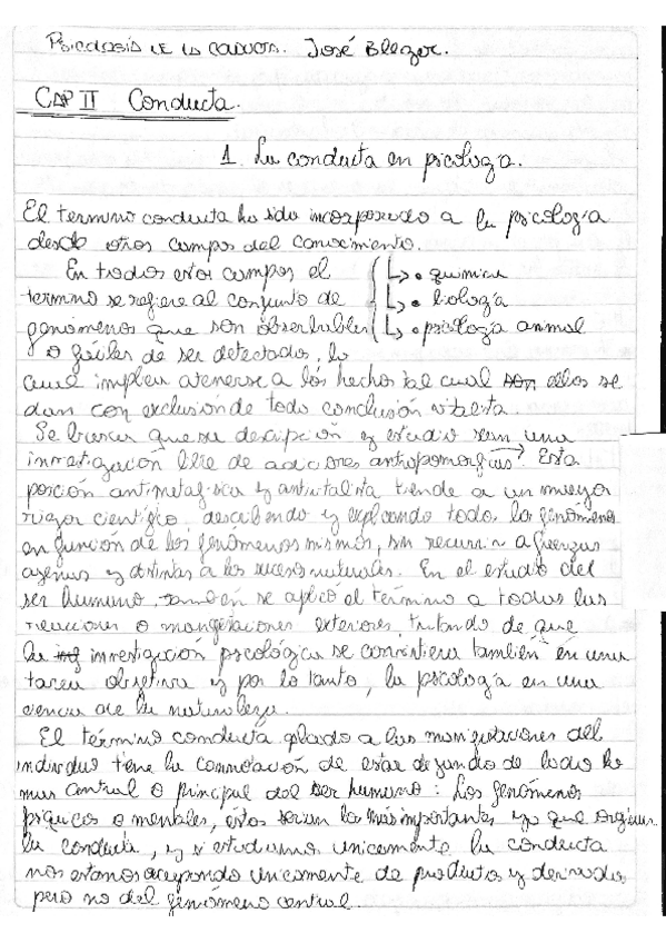 Resumen de la fotocopia del libro "Psicología de la conducta" de José Bleger. Capítulo dos: Conducta.