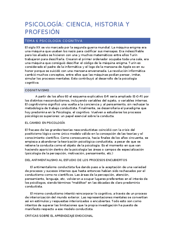 Apuntes temas 1, 2, 3, 4, 5, 6, 7 y 8 Psicología: historia, ciencia y profesión