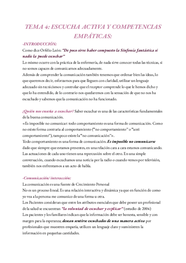 BLOQUE IV: COMUNICACIÓN HUMANA COMO BASE DE LA RELACIÓN PERSONAL SANITARIA