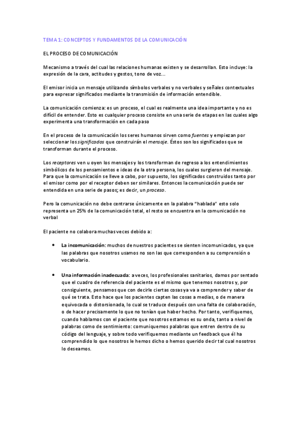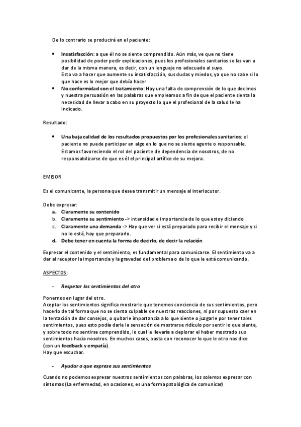 BLOQUE IV: COMUNICACIÓN HUMANA COMO BASE DE LA RELACIÓN PERSONAL SANITARIA