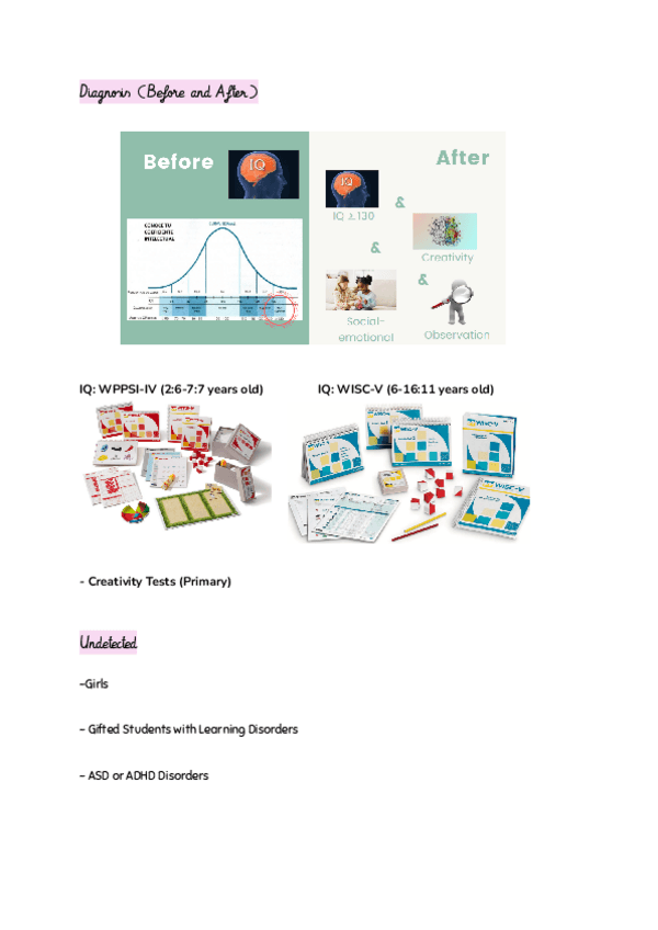 Este documento contiene los apuntes específicos dedicados a los "Gifted Students" que hice en la asignatura de Psychology 3. Ideales para complementar el Portfolio.