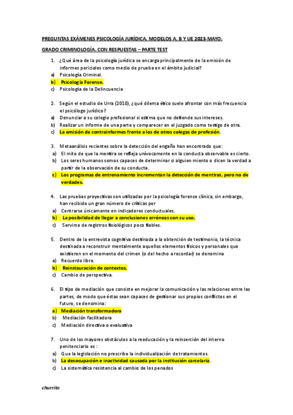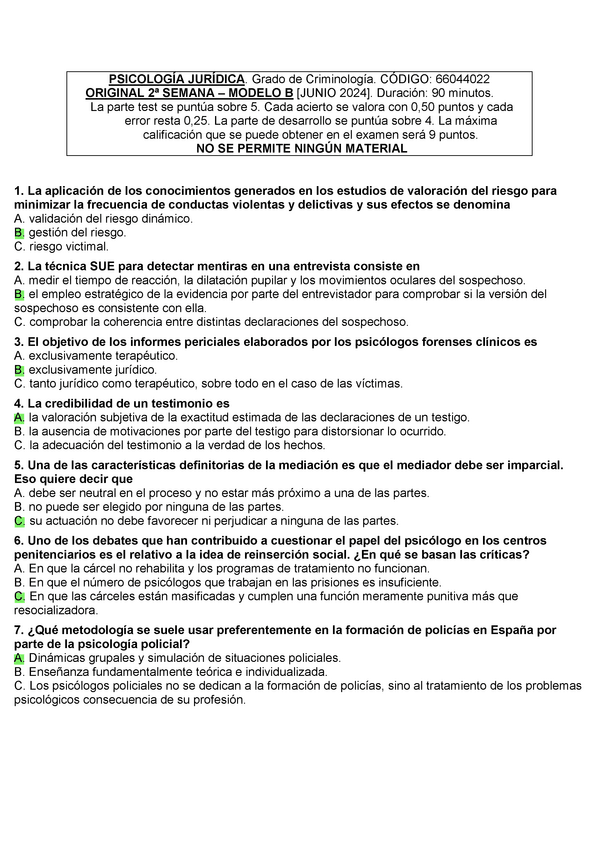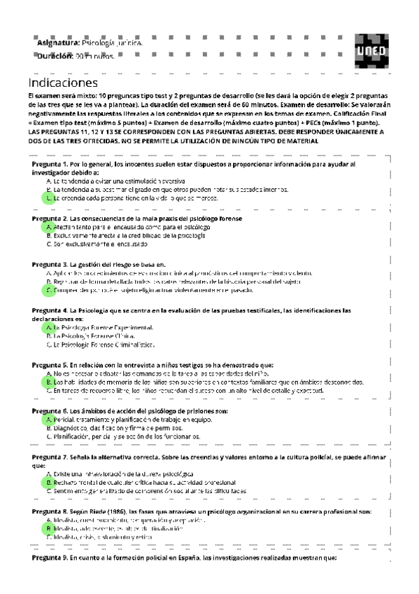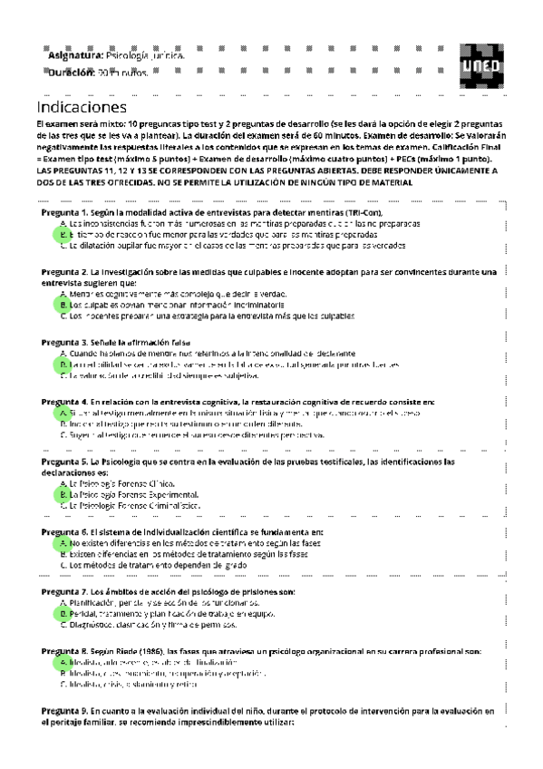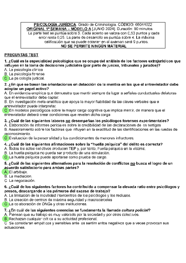 EXAMENES RESUELTOS AÑO 2023-2024 PSICOLOGÍA JURÍDICA