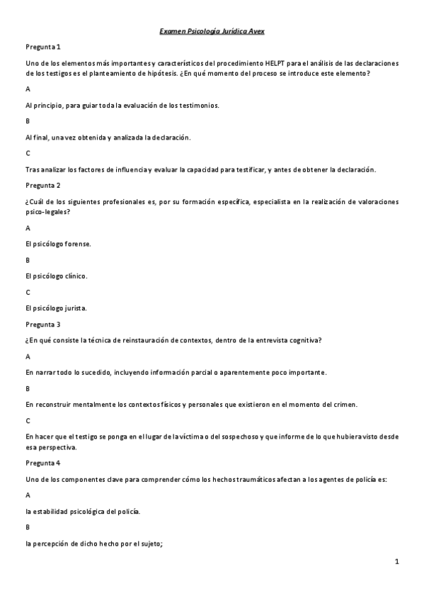 He publicado nuevos examenes de 4º Psicología Jurídica: PREGUNTAS-AVEX-PSICOLOGIA-JURIDICA.pdf