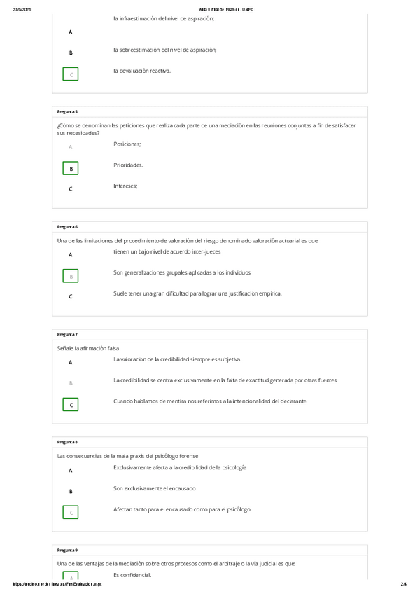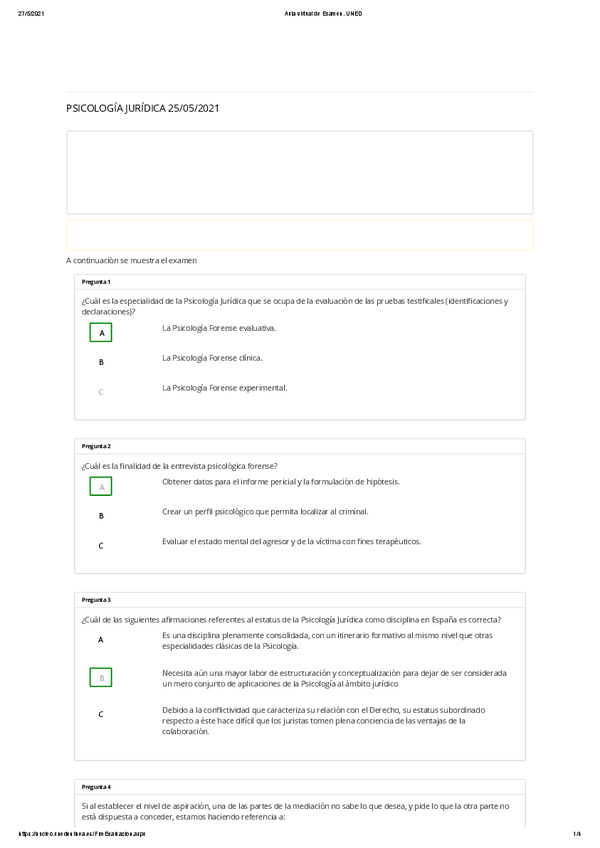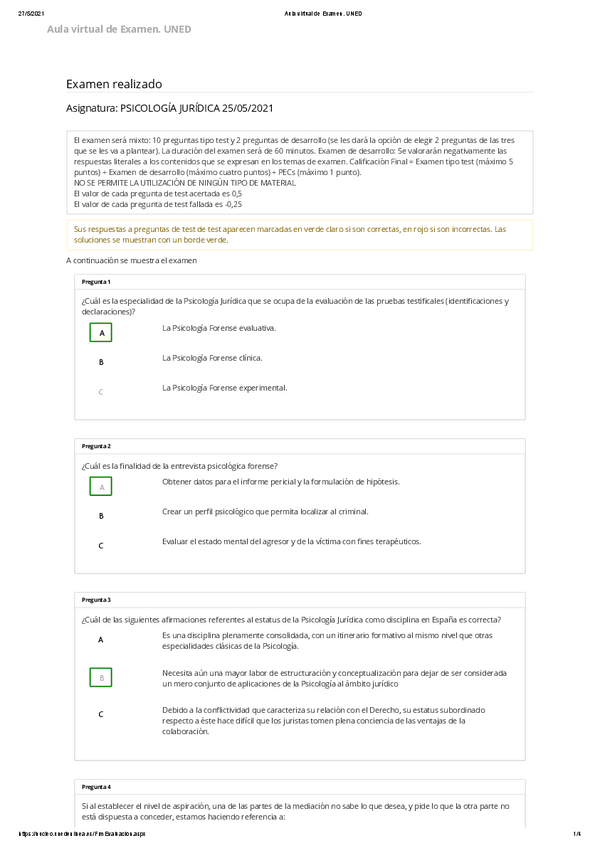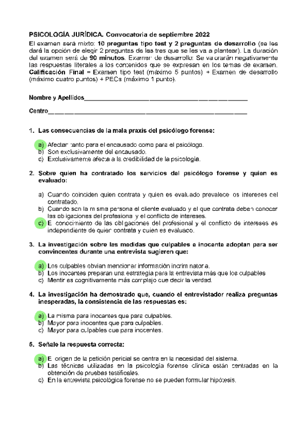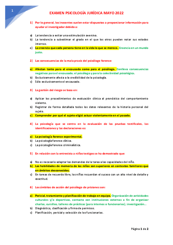 EXAMENES RESUELTOS AÑO 2021-2022 PSICOLOGÍA JURÍDICA