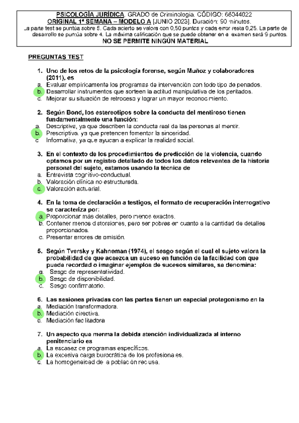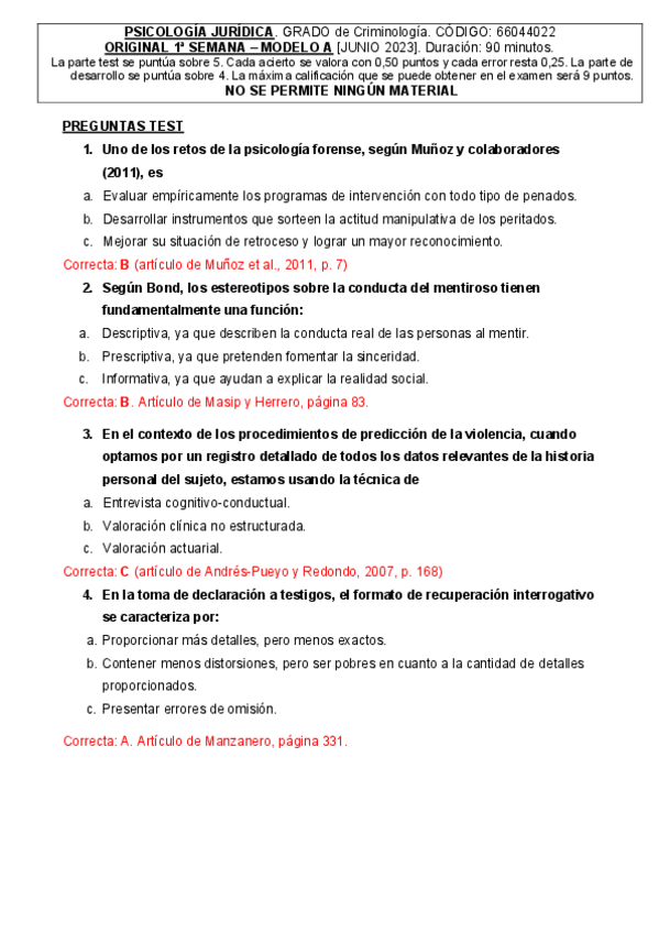 EXAMENES RESUELTOS AÑO 2022-2023 PSICOLOGÍA JURÍDICA