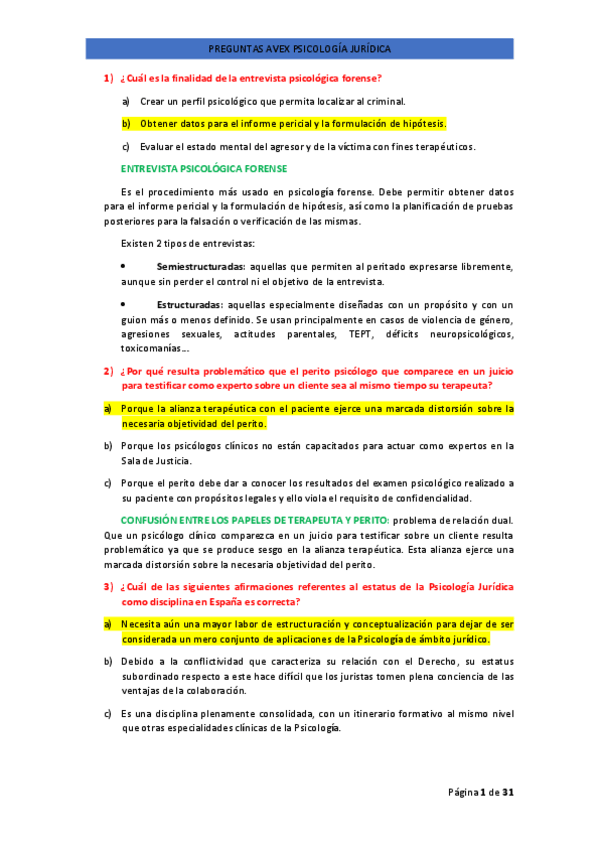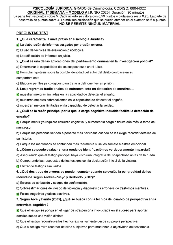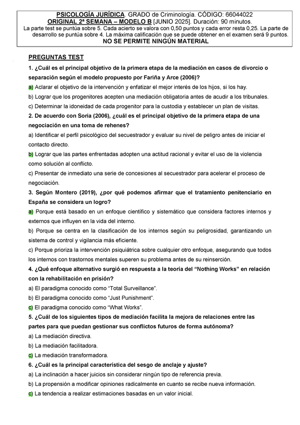 EXAMENES RESUELTOS AÑO 2024-2025 PSICOLOGÍA JURÍDICA