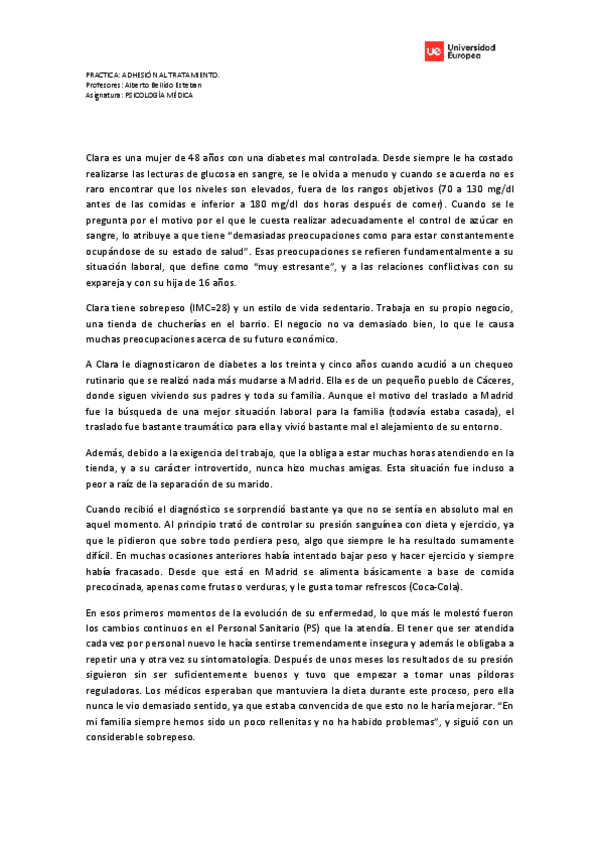 He publicado nuevos apuntes de 2º Psicología Médica: Caso Clara - Adhesión al Tratamiento.pdf