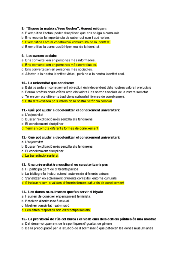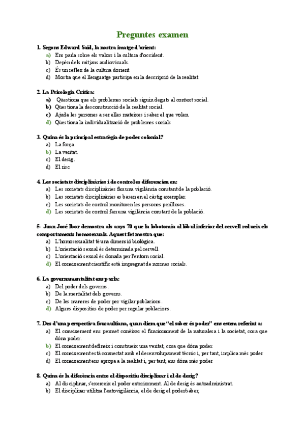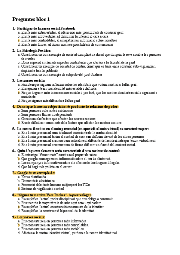 Preguntes proporcionades pel professorat (les no marcades és perquè no son del temari)
