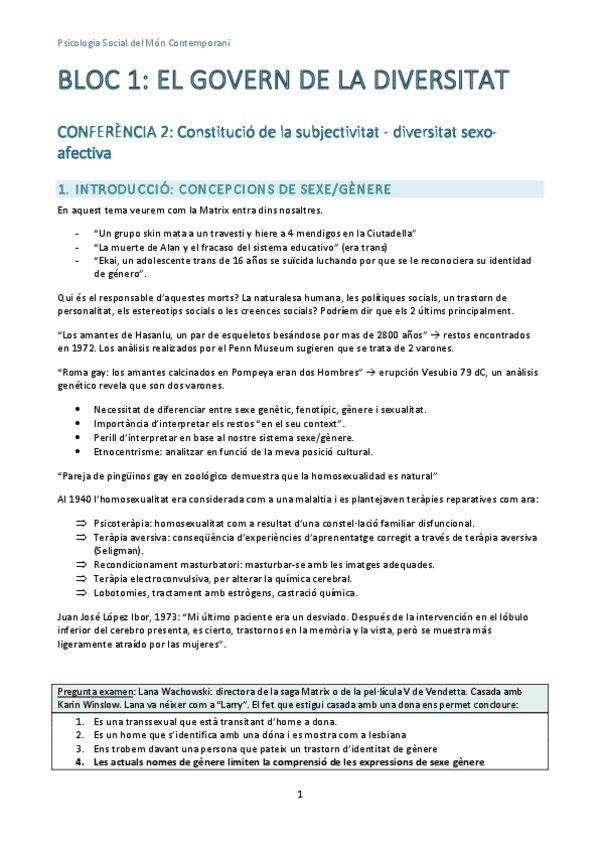 He publicado nuevos apuntes de 3º Psicología Social del Mundo Contemporáneo: BLOC I - TEMA 2. Diversitat de Gènere, Orientació Sexual i Cultura.pdf