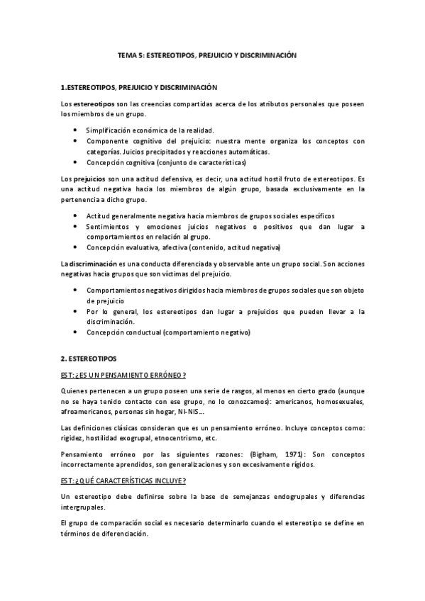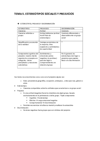 He publicado nuevos apuntes de 1º Psicología Social I: Tema 5. "Estereotipos y prejuicios" - Resumen.pdf