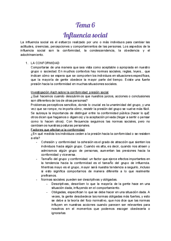 He publicado nuevos apuntes de 1º Psicología Social I: Tema 6. "Influencia Social" - Resumen.pdf