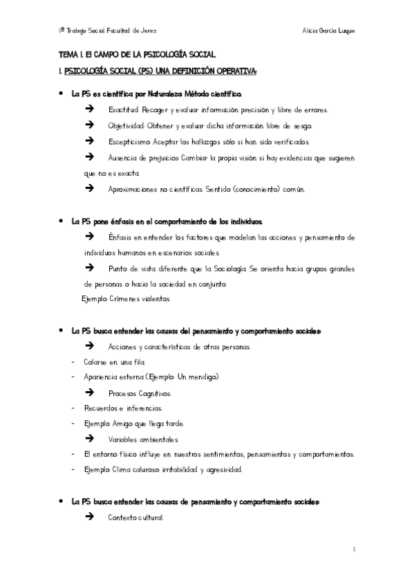 Apuntes de primero de Trabajo Social (UCA) de Psicología Social I con el profesor D.Rodrigo. Tema uno y dos.