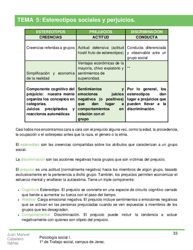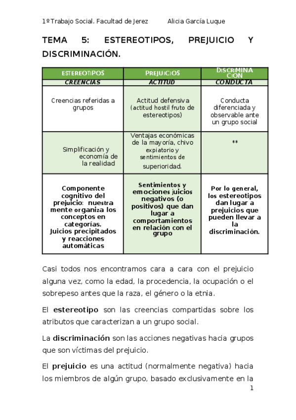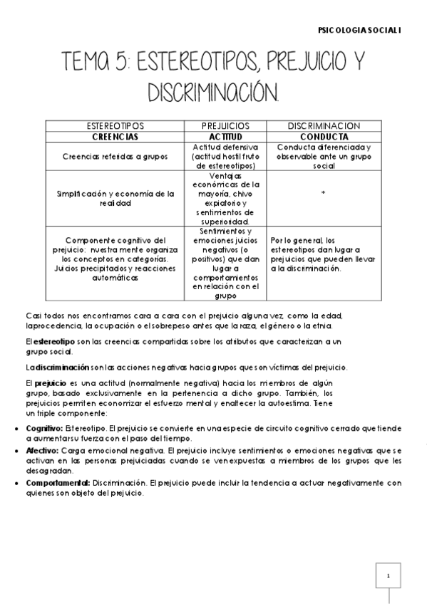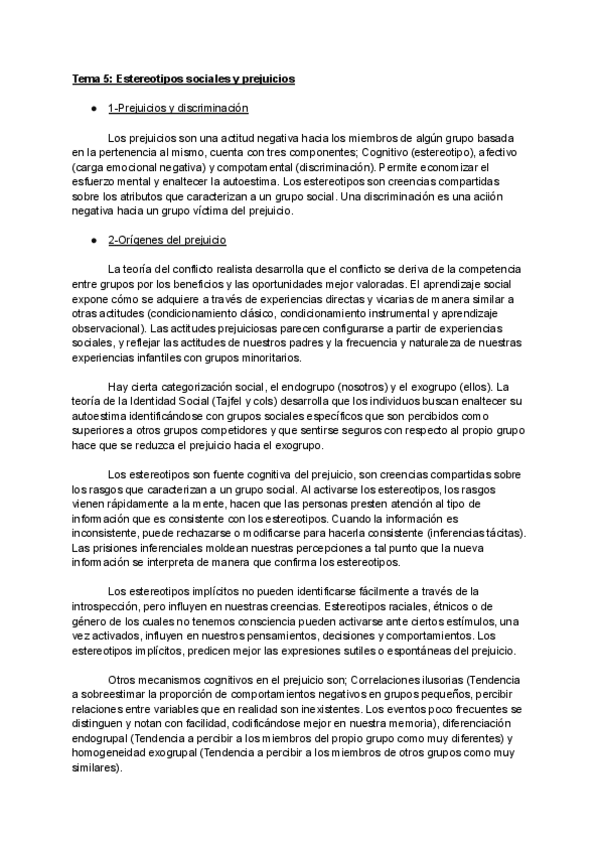 He publicado nuevos apuntes de 1º Psicología Social I: Tema 5. "Estereotipos y prejuicios" - Resumen.pdf