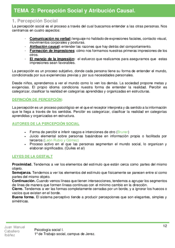 He publicado nuevos apuntes de 1º Psicología Social I: Tema 2. "Percepción Social y Atribución Causal" - Resumen.pdf