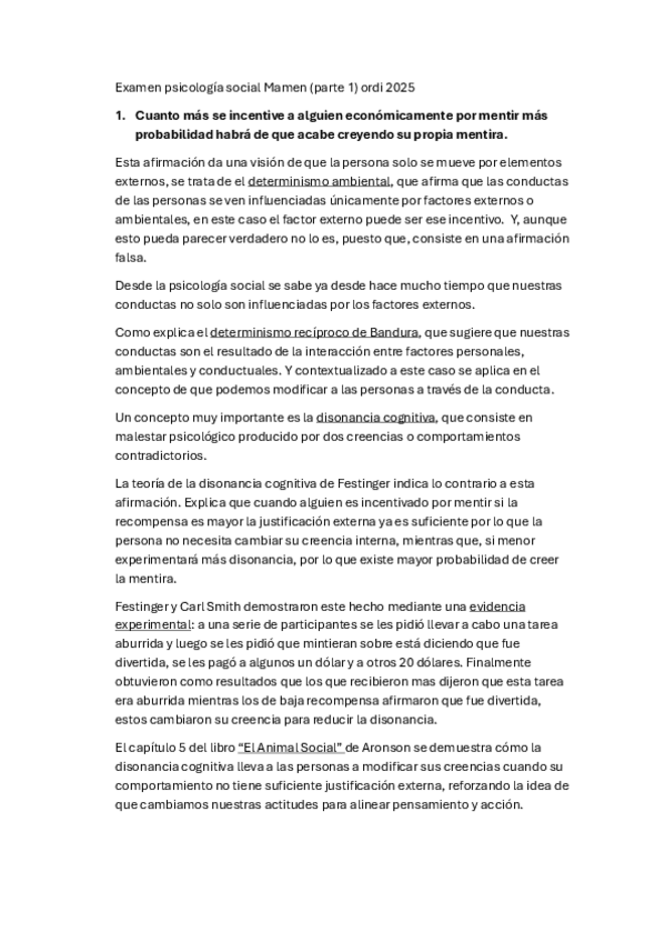 He publicado nuevos examenes de 1º Psicología Social I: Examen-Psicologia-Social-2-Mireya-2425.pdf