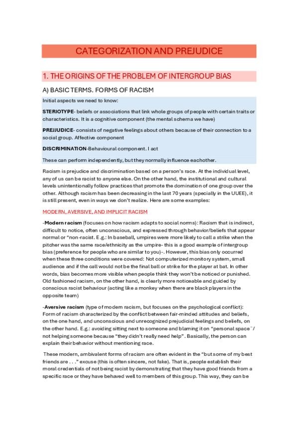 He publicado nuevos apuntes de 1º Psicología Social I: Tema 4 - La dinámica del prejuicio