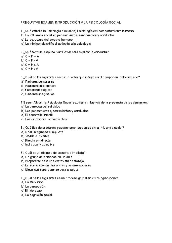 Posibles preguntas de examen para Introducción a la psicología social hechas con CHATGPT