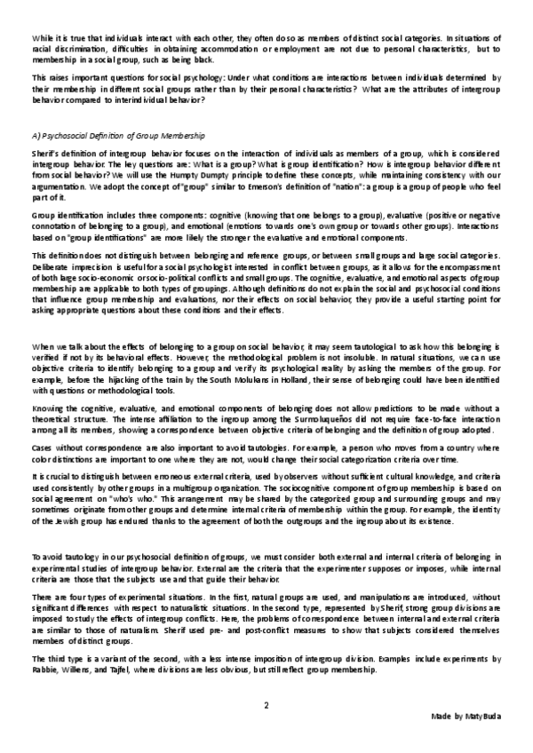 Summary, explanation and conclusion of the main ideas of the text 'Intergroup Conflict' by Tajfel.