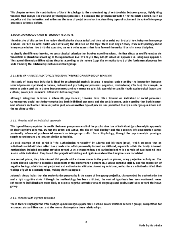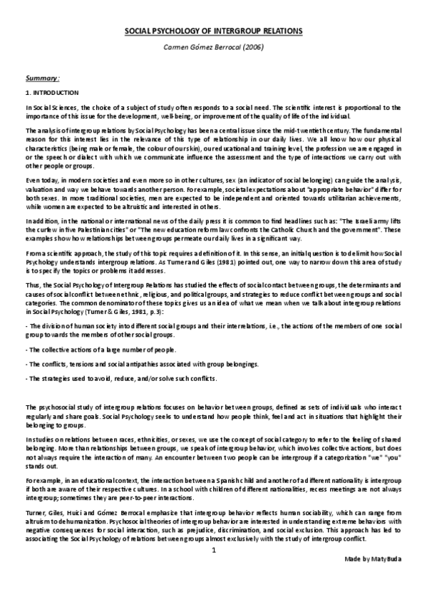 Summary, explanation and conclusion of the main ideas of the text 'Social Psychology of Intergroup Relations' by Gómez Berrocal.
