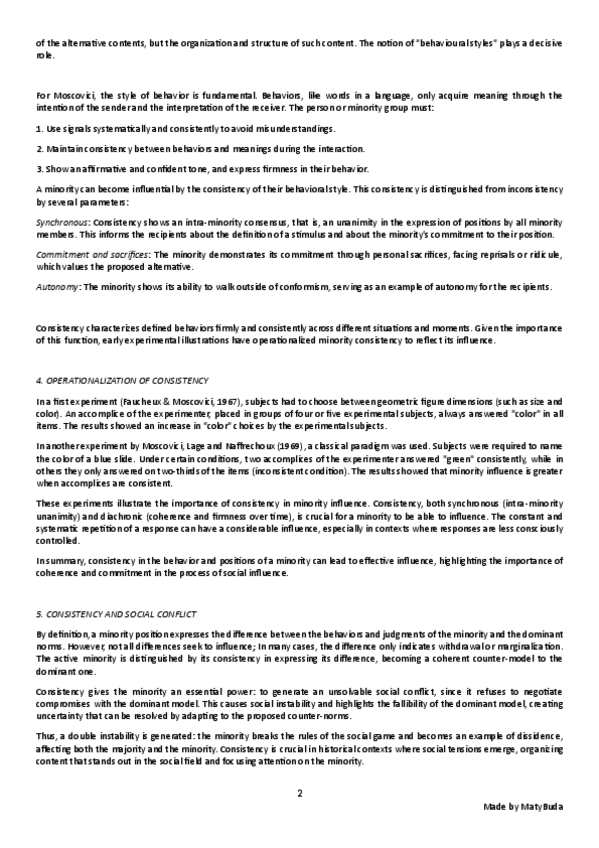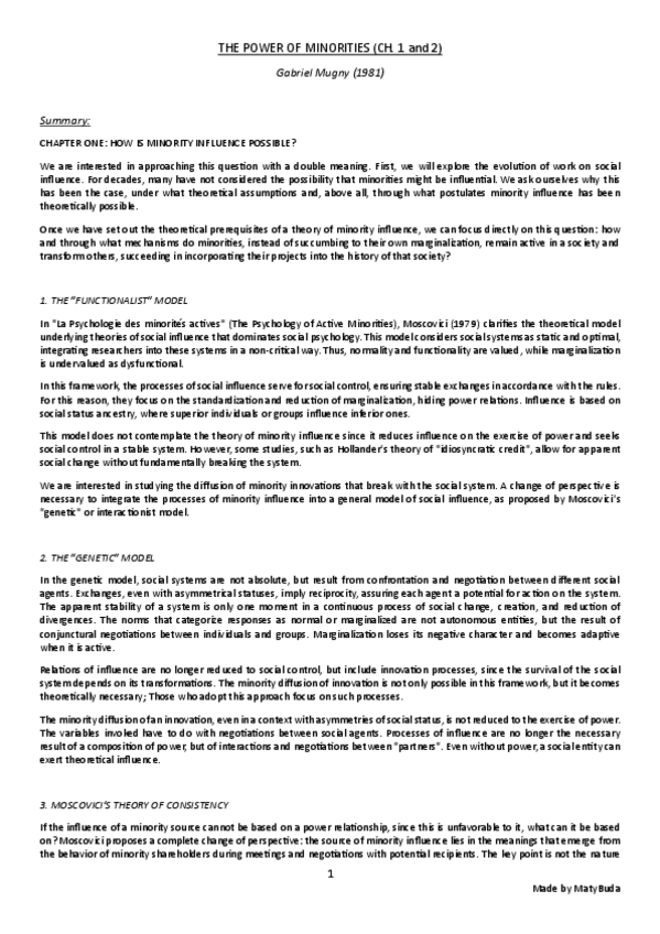 Summary, explanation and conclusion of the main ideas of the text 'The Power of Minorities (Ch. 1 and 2)' by Mugny.