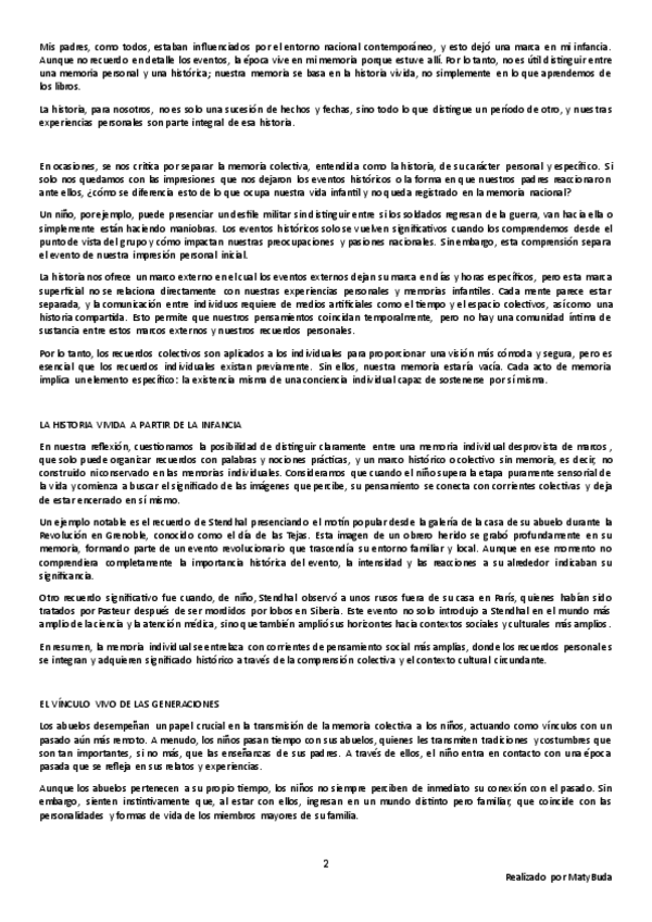 Resumen, explicación y conclusión, e ideas principales del texto 'Memoria Colectiva y Memoria Histórica' de Halbwachs.