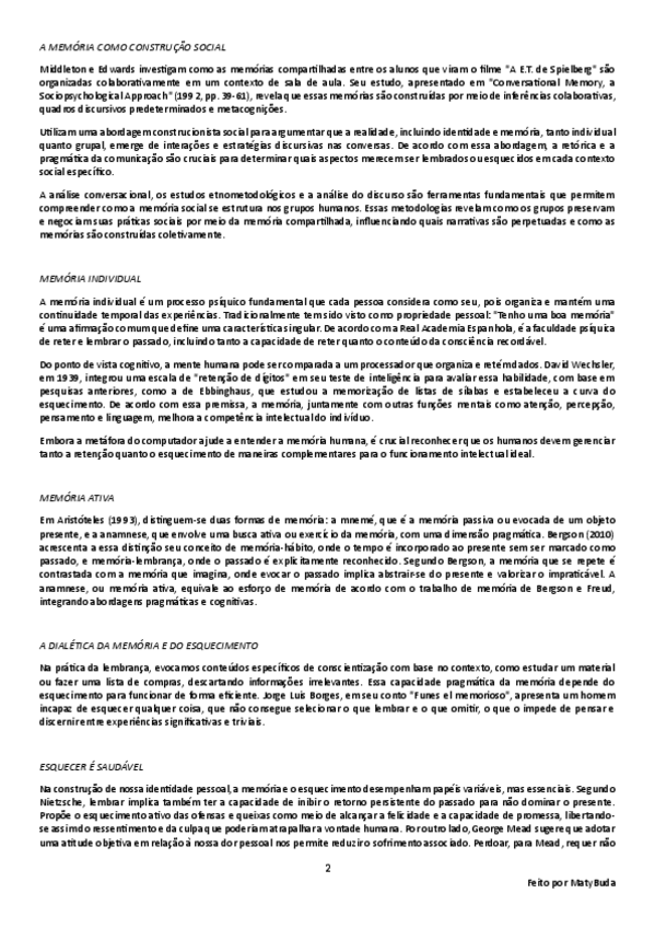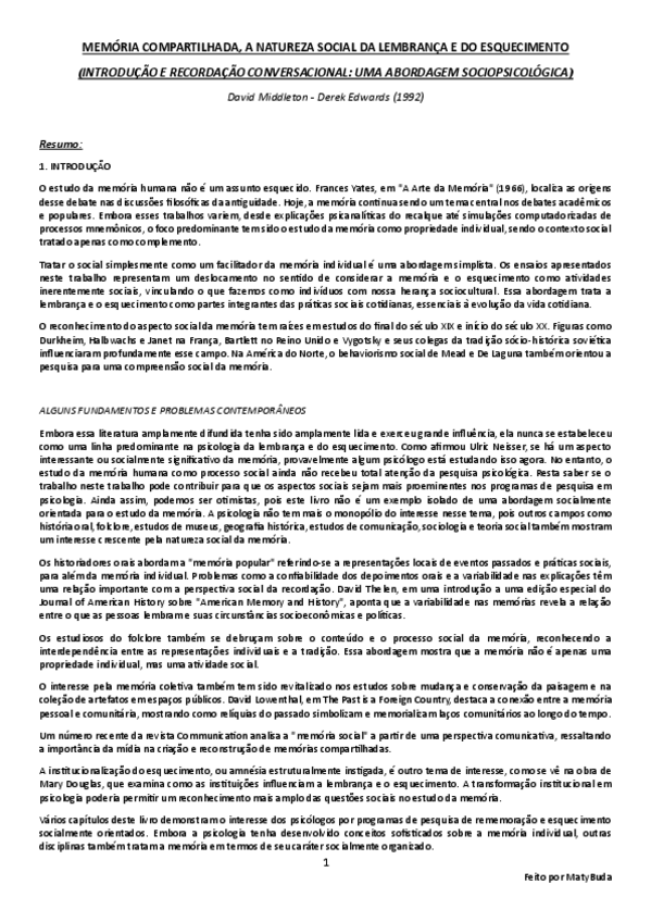 Resumo, explicação e conclusão das ideias principais do texto 'Memória Compartilhada, a Natureza Social da Lembrança e do Esquecimento (Introdução e Capítulo 2)' de Middleton e Edwards.