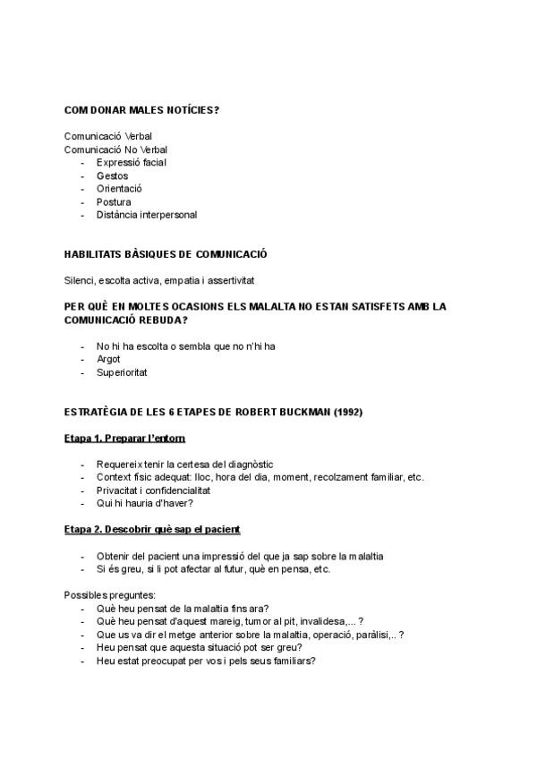 1. Introducció de la psicologia de la salut 2, Males notícies 3. Pèrdua i dol 4. Emocions i Salut 5. Psicologia del Desenvolupament / evolutiva